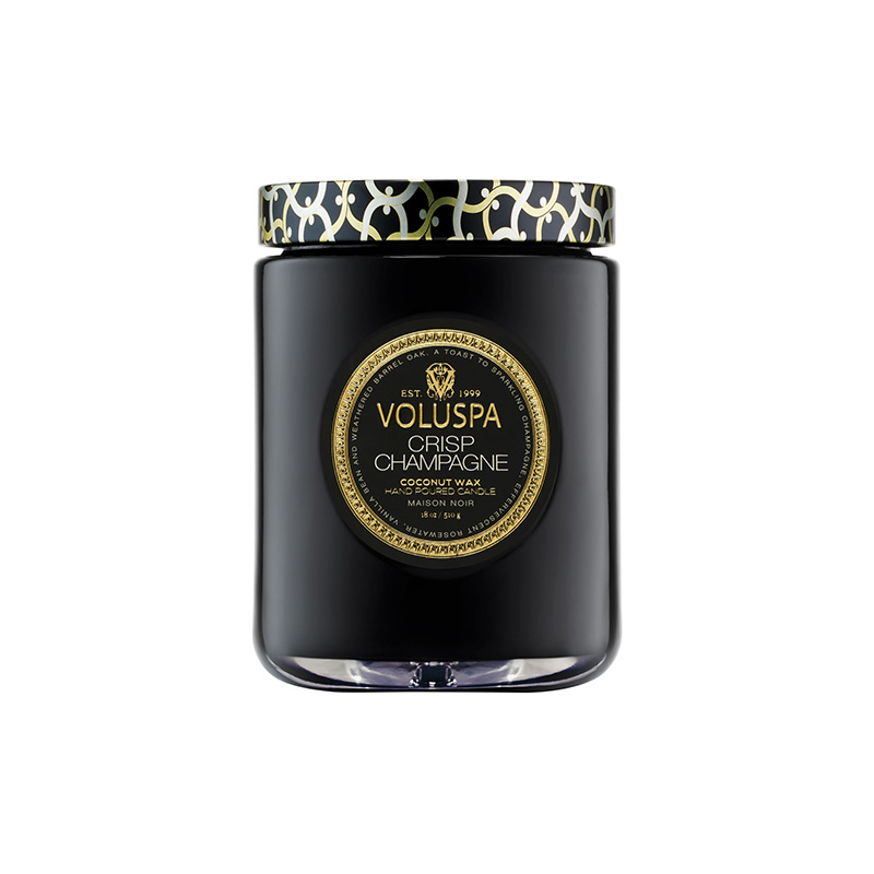 Crisp Champagne – Lúxus ilmkerti frá Voluspa í fallegri glerkrús með loki.