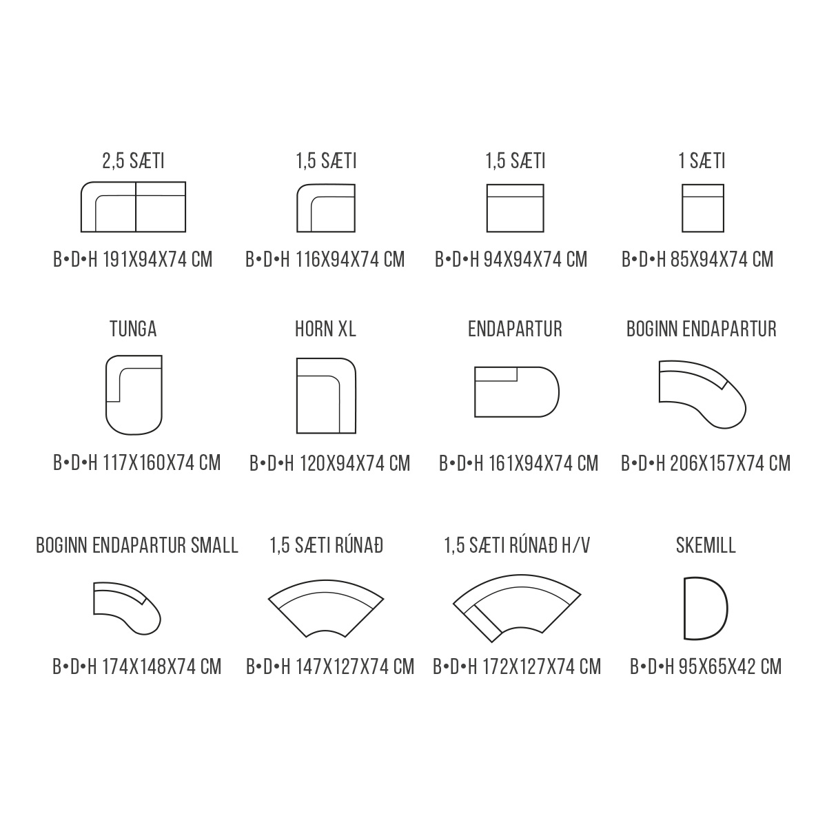 Einingasófi sem er fáanlegur í mörgum stærðum og útfærslum