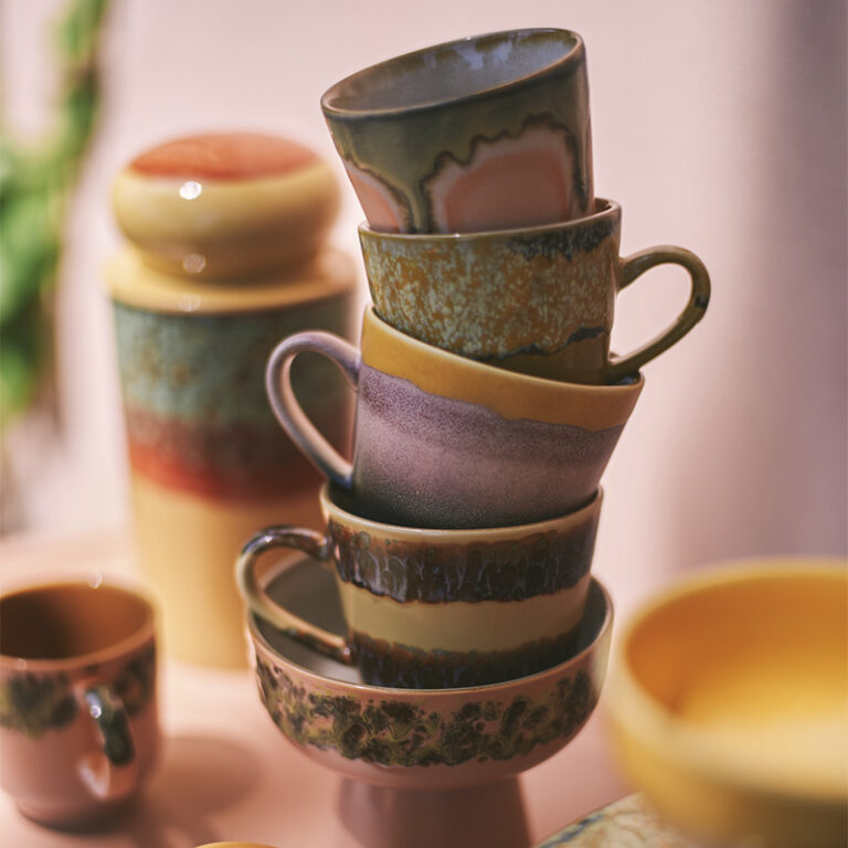 70‘s keramik stellið frá HK Living er í miklu uppáhaldi hjá okkur. Kaffikrúsir, espresso bollar, latte bollar og americano bollar í úrvali.