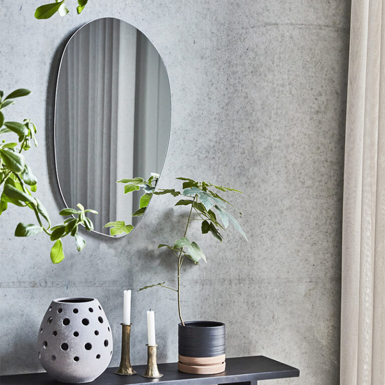 Speglar geta bæði virkað sem veggskraut eða til þess að láta rými virðast stærra en það er. Stórir hringlaga eða ávalir speglar setja skemmtilegan svip á rýmið.